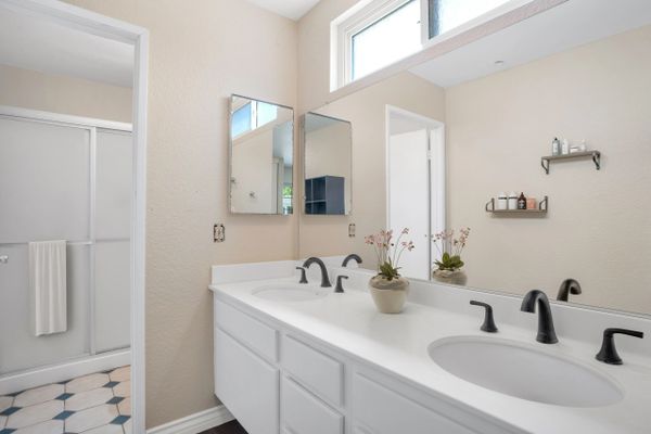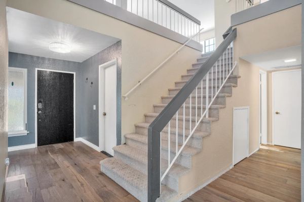Tucked away on a cul-de-sac and close to Mission Oaks Park and top-rated schools, this 3-bedroom, 2.5-bath two-story home with 2,400 sq. ft. of interior living space is perfect for anyone ready to roll up their sleeves and make it their own. The highly sought-after downstairs primary suite offers two closets and a dual-sink ensuite bath. The living room features soaring vaulted ceilings, a cozy fireplace, and a ceiling fan, while the powder bath, breakfast nook, and formal dining area provide functionality and charm. Upstairs, you'll find two bedrooms, an additional bath, a separate loft, and a versatile bonus area—perfect for a home office, playroom, or conversion to a 4th bedroom. The spacious yard includes RV parking, two storage sheds, and mature fruit trees including lemon, kumquat, and a flourishing fig. Extras include leased solar for energy efficiency, extra flooring materials, a kitchen refrigerator, washer, dryer, and garage storage cabinets. If you love a great layout and a good weekend project, this is the home for you! With just a little paint, some finishing touches, and your favorite tools, you can unlock this home's full potential.